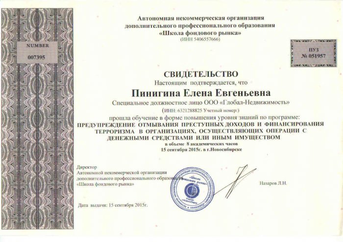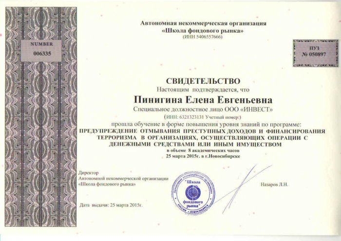 Свидетельство Школа фондового рынка 2015