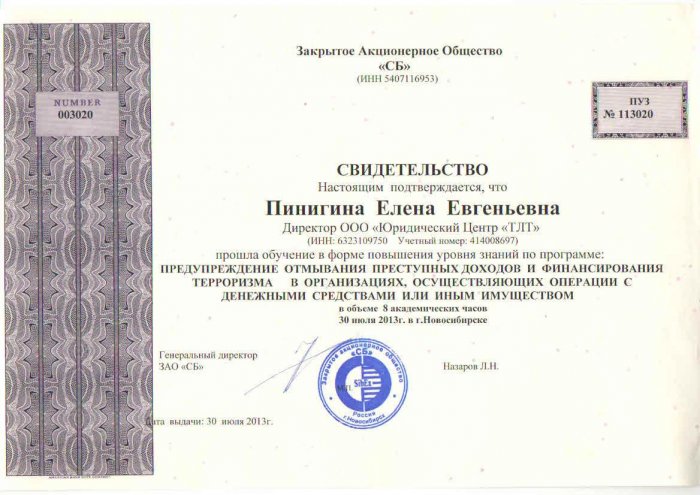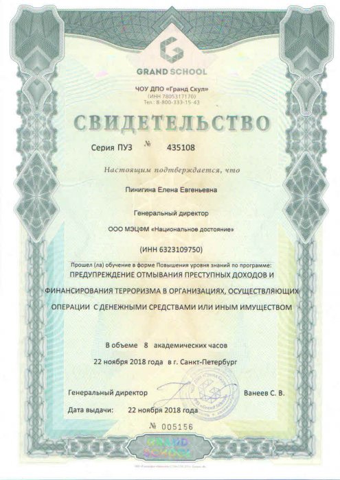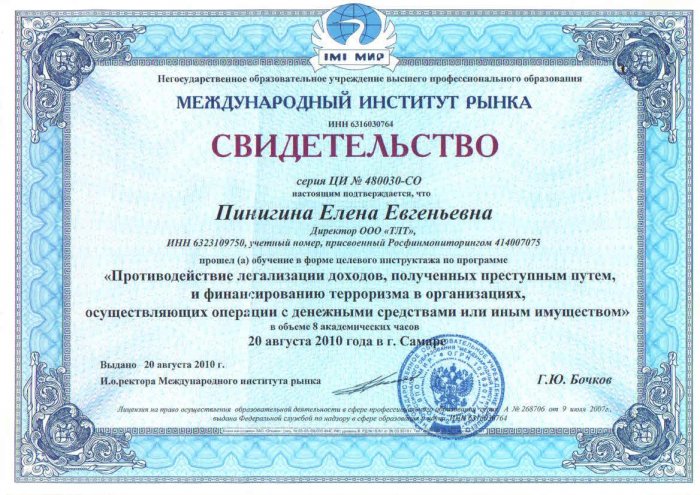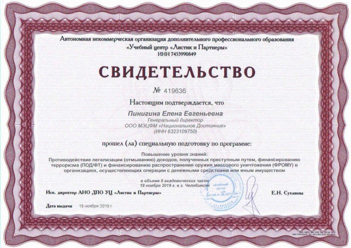 Свидетельство Учебный центр "Листик и партнеры"
