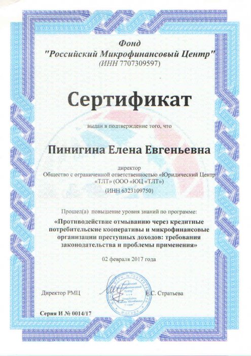 Сертификат РМЦ 2017