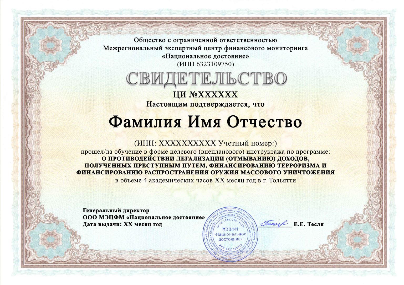 В случае прохождения обучения по ПОД ФТ в нашей организации, вы можете запросить у нас дубликат свидетельства о прохождении обучения.